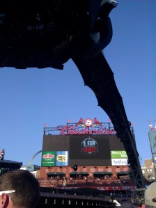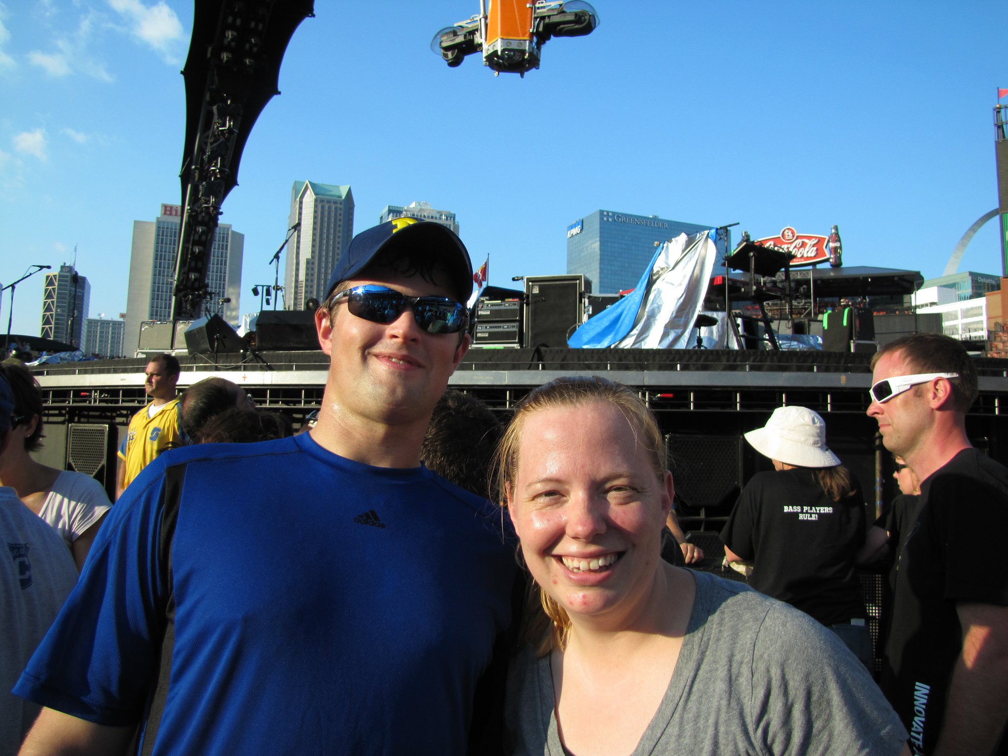 It felt a little sacrilege that my first step in the new Busch Stadium was for a concert and not a baseball game, but I got over that pretty quickly. The set was incredible, but it was also incredibly hot. They had covered the grass field with metal sheeting, which only reflected the already oppressive heat back into the air. So imagine the misery of humid Missouri summer heat multiplied by about 50,000, and you’d have an idea of what it was like on the field. But we were on the field about to see U2, so it kinda didn’t matter.