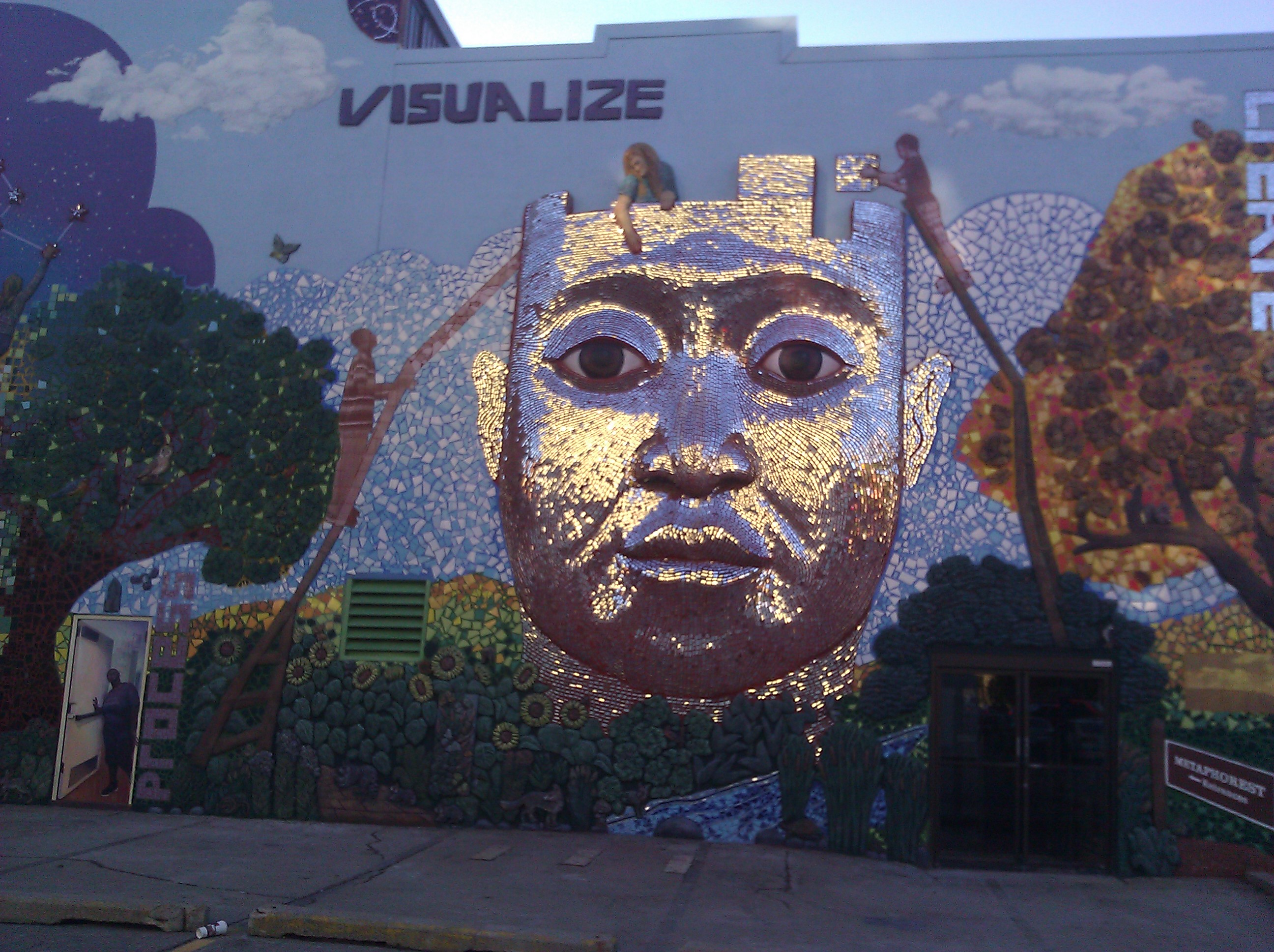 Megan is the little sister of my best friend’s husband, Dave, and of Facebook friend #186, Daniel. She and I met when we were both bridesmaids in Dave’s wedding, and have been in touch off and on ever since. Having grown up in northern Michigan and attended Michigan State, Megan now lives in Grand Rapids. She was the perfect person to kick off my visits there with. Having only lived in the city a short time, she knows a lot about it and was excited to show it off. From the great coffee shop where we met, to the festivals she told me about, to our walk around town where she told me about many of the local landmarks, Megan oozed hospitality in such a lovely way. Our explorations of the city eventually landed us at the “Visualize” mural: